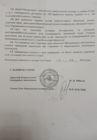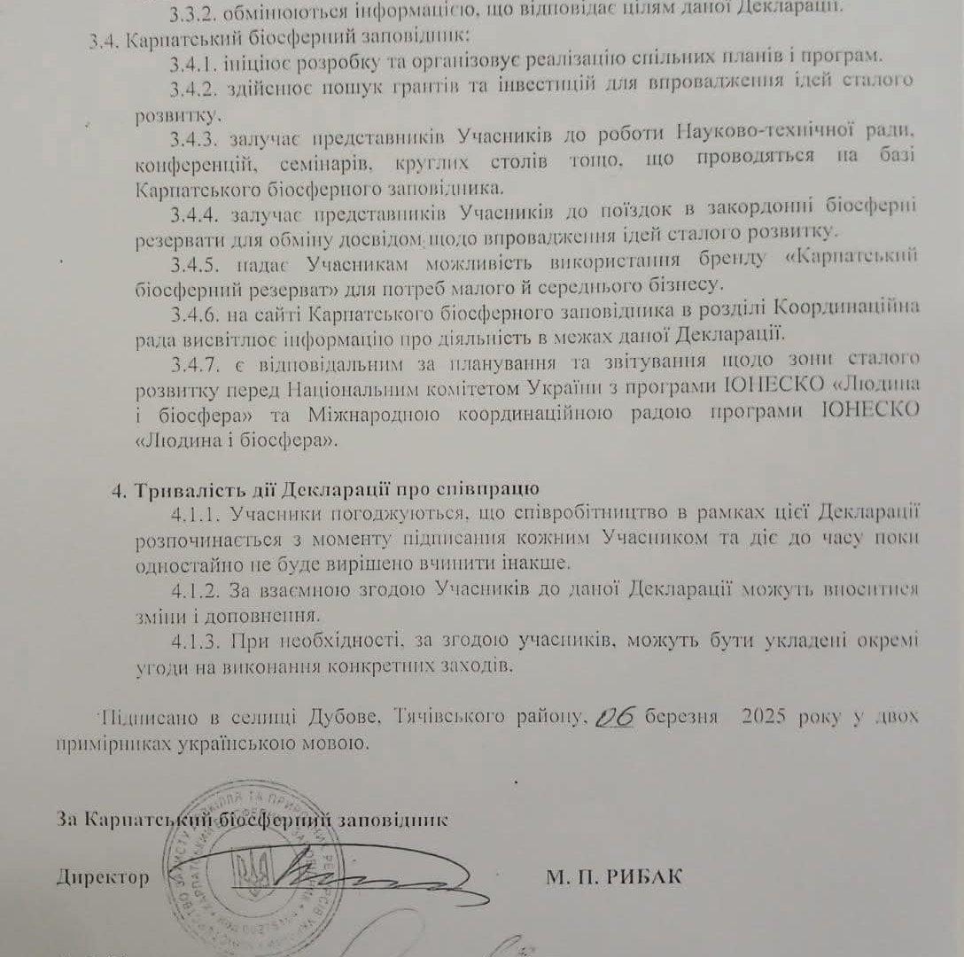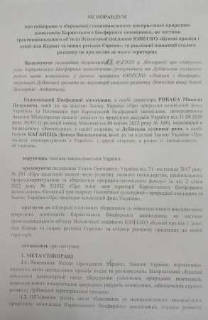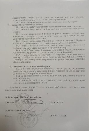 Сторони висловили спільне прагнення поглиблювати партнерство та об’єднувати зусилля задля сталого розвитку територій і невиснажливого використання природних ресурсів Карпатського біосферного заповідника.