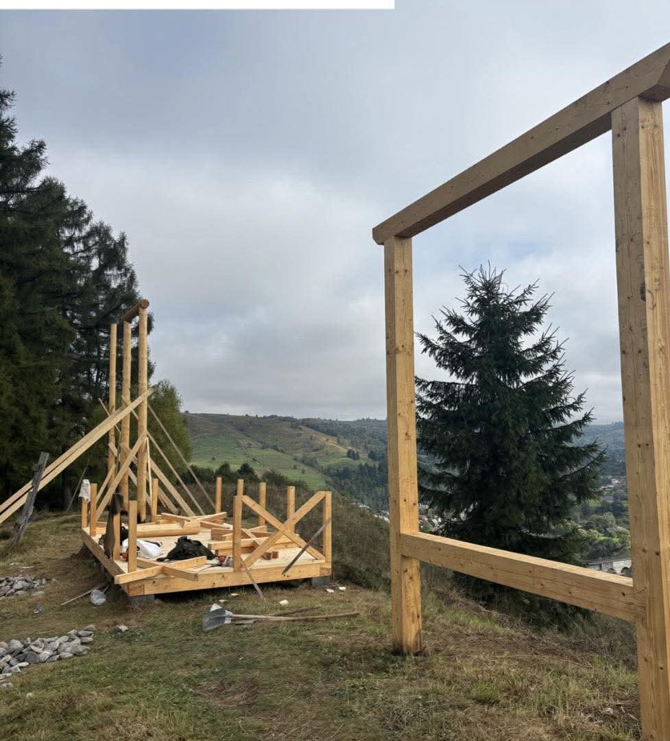 Усі конструкції виготовляються з натурального дерева, що підкреслює екологічність проєкту та його гармонійне вписування в навколишнє середовище.