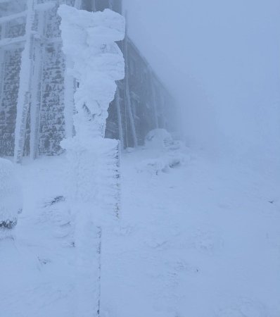 На вершині панує суворий гірський клімат. Температура повітря опустилася до -7°С. Такі показники зазвичай фіксують лише у розпал зими, але не на початку жовтня.