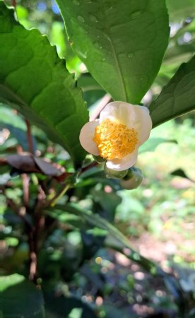 Цвітіння чаю на Закарпатті є осінньо-зимовим явищем. Чайний кущ вкривається невеликими, але дуже гарними білими квітами, які зазвичай мають 6–8 пелюсток та безліч тичинок.