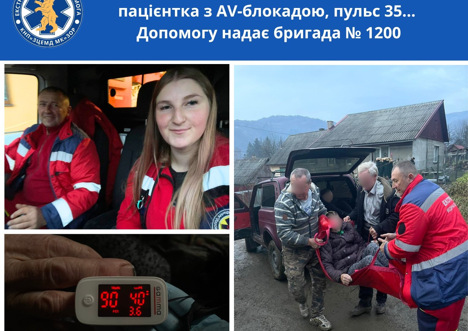 У неділю, близько 13:55, надійшов виклик із Рахова (вул. Гірська) до 90-річної жінки з високим тиском і болем у грудях. Бригада №1200 у складі парамедика Анісії Тимчук та ЕМТ Віктора Чуфіщука негайно виїхала на місце.