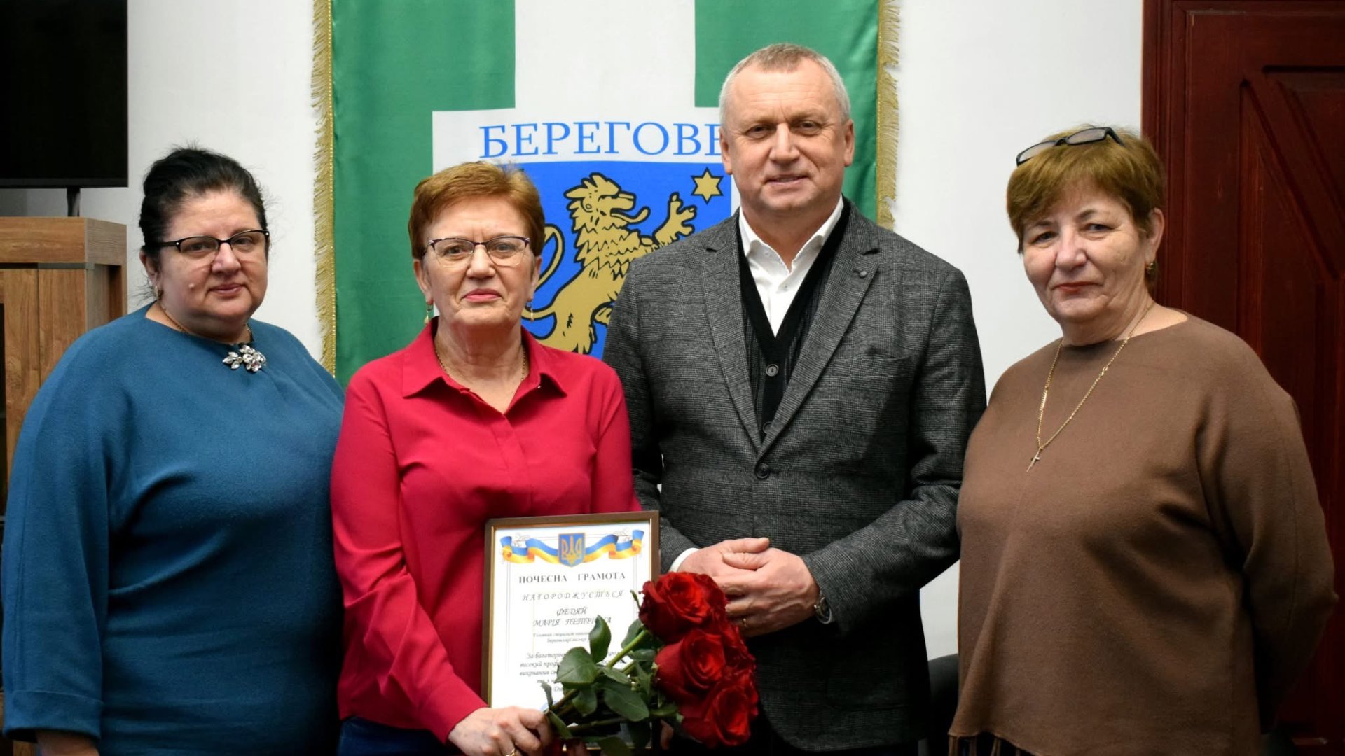 Під час привітання очільник міста вручив іменинниці Почесну грамоту Берегівської міської ради. Також він подякував за сумлінне виконання службових обов’язків і високий рівень професіоналізму.
