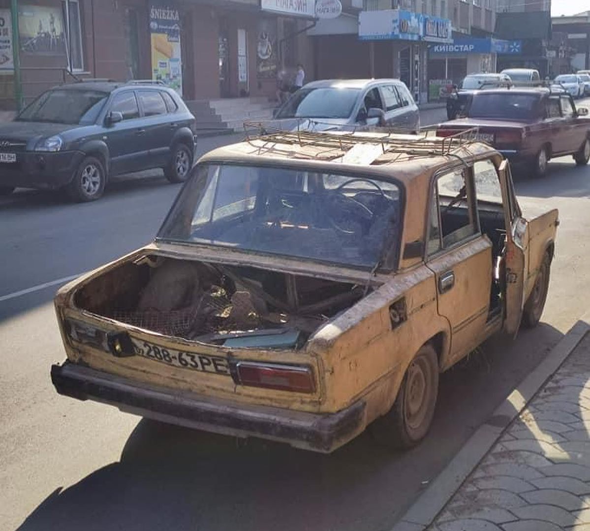 На фотографії, що супроводжує пост, зафіксовано «Жигуль», який виглядає так, ніби він щойно пережив зустріч із пресом для металобрухту. Попри очевидні критичні пошкодження кузова, автор стверджує, що автівка в ідеальному стані.