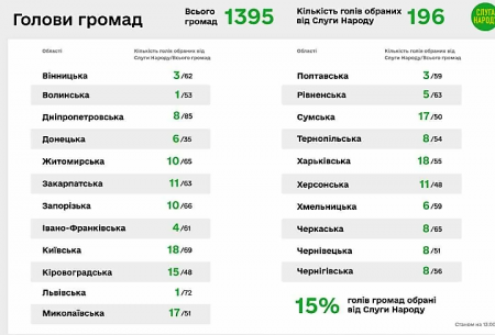 За попередньою інформацією, Слуги народу стверджують, що виграли на Закарпатті 11 голів ОТГ з 63.