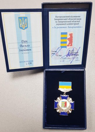 Голова Закарпатської обласної ради Михайло Рівіс та голова Закарпатської державної адміністрації Олексій Петров нагородили очільника Рахівської районної ради Василя Дана нагрудним знаком «За розвиток Закарпаття». Відзнака вручена за особистий внесок Василя Івановича у соціально-економічний і культурний розвиток регіону.