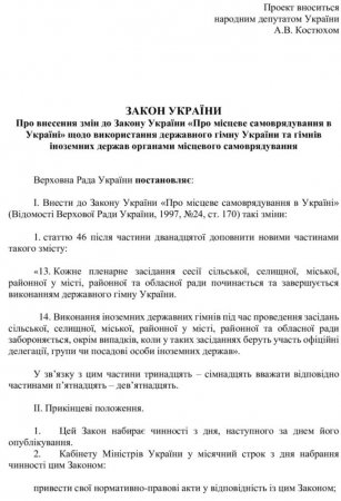 Відповідно до законопроекту про внесення змін, йдеться, що кожне пленарне засідання сесії сільської, селищної, міської, районної у місті, районної та обласної ради починається та завершується виконанням державного гімну України.