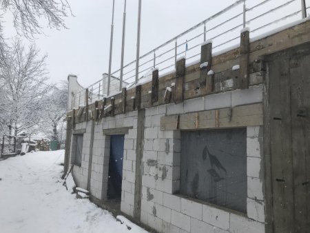 Підрядником з виконання робіт по об’єкту є ТОВ «Квадробуд –БПВ». Станом на сьогодні здійснено наступні заходи: розібрано стару підлогу і конструкцію під нею, демонтовано перекриття та перестінки, залито заклади під колони, зашаловано і залито колони і регелі, зашаловано, заармовано і залито покриття сцени, зроблено дренажну систему, встановлено перила з флагштоками, зроблено перестінки в приміщеннях під сценою, залито зовнішні сходи навколо сцени. Зараз підрядник виконує штукатурні роботи та встановлює вентиляційну систему.
