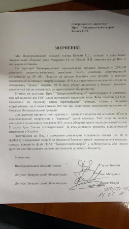 У зв’язку з цим обласні депутати від партії «Рідне Закарпаття» Іван Матрунич та Йосип Фізеші, разом з міським головою Степаном Бочкаєм в червні 2021 року звернулися до обленерго з проханням відкриття філії у м. Виноградів.