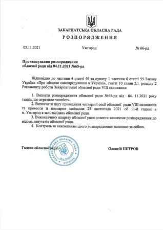 Події в Закарпатській обласній раді набувають нових обертів, схоже що Олексій Петров, який за словами Миколи Тищенко не «тримається» в кріслі переніс своїм розпорядженням завтрашнє засідання сесії на 25 листопада.