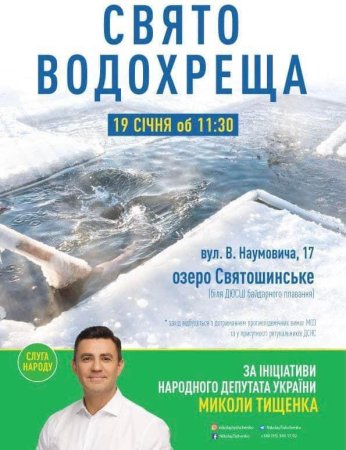 «Друзі голова Закарпатської обласної організації партії “Слуга Народу” Микола Тищенко разом з командою запрошує всіх охочих на свято Водохреща в місті Ужгород.