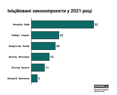 Законотворча активність представників Закарпаття була динамічною. Так, у 2021 році депутати розробили 95 проєктів законів. Якщо 61 із них зареєстрували в першій половині року, то з липня по грудень — лише 35.