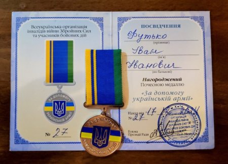 Герой тилу: Іван Футько нагороджений медаллю "За допомогу українській армії"