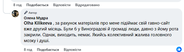 «За рахунок матеріалів про мене підіймає свій гавно-сайт вже другий місяць. Були б у Виноградові й громаді люди, давно з йому рота закрили».