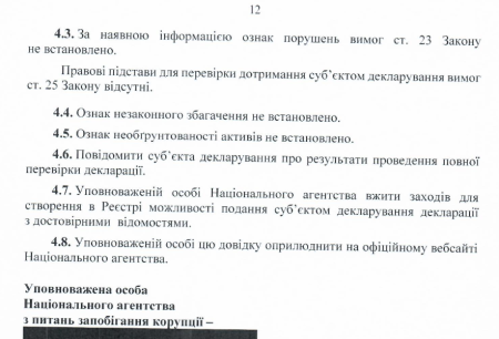 Перевірка встановила, що посадовець під час заповнення декларації вказав недостовірні відомості на загальну суму 19 047 281,30 грн. Це перевищує понад 2000 прожиткових мінімумів для працездатних осіб на дату подання декларації.