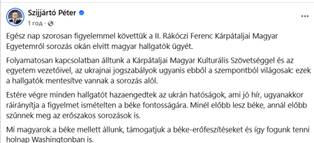 «Ми постійно підтримуємо зв’язок з угорською культурною асоціацією Закарпаття та керівництвом університету. Українська влада зрештою відпустила всіх студентів додому — це позитивний сигнал», — зазначив Сіярто.
