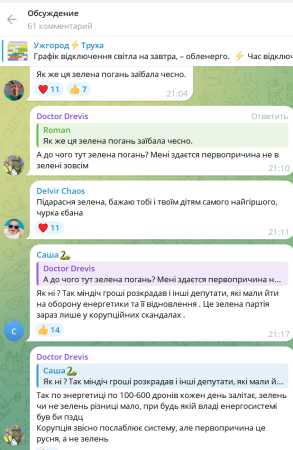 Останніми днями в закарпатських пабліках — «гаряче». Під кожним постом про графіки відключень розгортаються справжні баталії. Але якщо придивитися, стає зрозуміло: гнів людей намагаються штучно перенаправити.
