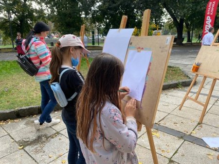 У середмісті розгорнулось творче містечко, де протягом двох годин за партами та мольбертами юні художники творили осінь зразка 20-го року. Щоб полегшити завдання організатори створили фотозону з великих гарбузів, осінніх квітів, колоритних українських хусток та килимів.