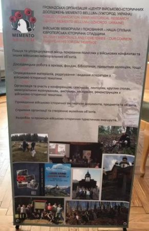 Міжнародна науково-практична конференція «Військові меморіали і поховання – наша спільна європейська історична спадщина» стартувала з Ужгорода й розпочалася з виставки «Уродженці України – чехословацькі воїни у Другій світовій війні». Її показали у залах Археологічного музею УжНУ ім. Е.Балагурі. Там можна було побачити розповіді військових, учасників війни. Останні описували тодішні емоції, про пережите, про війну. За словами організаторів підготували унікальну експозицію Генеральне консульство Чеської Республіки у Львові.
