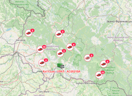 Обрати розділ «СМАРТ Закарпаття» і натиснути кнопку у правому нижньому куті екрану — «Трекінг лісовози».