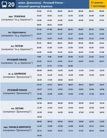 Маршрут №20 (158) «мкрн. «Доманинці» - Речовий ринок- міський цвинтар «Барвінок» (через пл. Корятовича)”