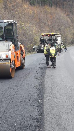 На Рахівщині, влаштовують нижній шар асфальтобетону (Фото)