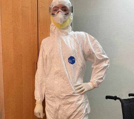 Лікарі ковід-центру заступають на чергування на 7 днів, а щодоби працюють у 2 зміни, кожні 4 години здавали вахту. В їх очах (а видно лише очі, бо вони у повністю захисних костюмах) я бачив співпереживання до пацієнтів, моральну підтримку, велику фізичну навантаженість…