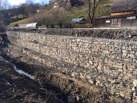 Триває укріплення берегів та узбіч дороги Н-09 в селищі Ясіня. Ось такі виросли підпірні габіонні стінки. Тепер дорога Н-09 захищена від зсувів.