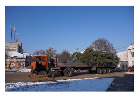 У перший день зими, 1 грудня, на площі Поштовій у Тячеві встановили новорічне хвойне деревце. Як і кілька років тому, його подарували громаді приватні підприємці Василь Куцин та Микола Сасин.