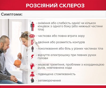 Україна увійшла в зону високого ризику захворюваності на РС: станом на 2017 р. у нашій країні нараховувалося 20 934 пацієнтів із РС (60,2 на 100 тис.). Проте насамперед через відсутність єдиного всеукраїнського реєстру хворих, достовірної статистичної інформації щодо захворюваності на РС, а також, у низці випадків, несвоєчасну діагностику РС реальна кількість хворих на даний час може бути набагато більшою.