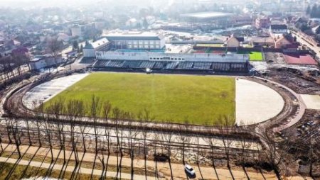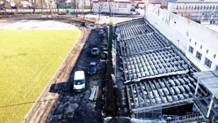 Готовність об’єкта – 70%. Зараз триває будівництво бігових доріжок та спортмайданчиків, згодом облаштують нові трибуни і проведуть благоустрій території.