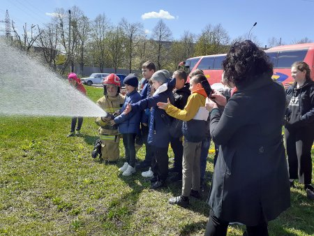 Під час екскурсії в частині влаштували навчальну тривогу, аби діти побачили, як черговий караул збирається й виїжджає на ліквідацію загорання. Далі вогнеборці показали школярам “начиння” пожежного автомобіля й розповіли про призначення кожного виду спорядження. Учні також мали можливість зробити селфі для соцмереж усередині машини. Але найбільший захват дітлахів викликала можливість під пильним наглядом рятувальників пустити воду з пожежного рукава.