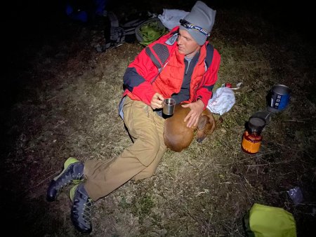 І от до одної із команд у горах вчепився песик про це повідомив в мережі Фейсбук Олексій Середюк: