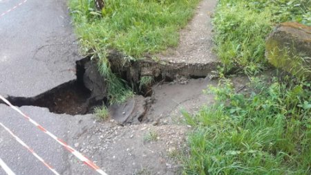 У Виноградові по вулиці Корятовича провалився люк разом з асфальтом.