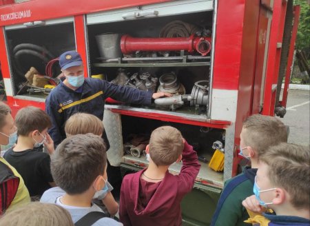 Рятувальники обох підрозділів роз’яснили діткам основні правила безпеки життєдіяльності та дії в разі їх виникнення, продемонстрували оснащення пожежно-рятувальної та спеціальної техніки, яка залучається для ліквідації наслідків пожеж і надзвичайних подій, а також провели показові виступи щодо гасіння умовної пожежі. Всі бажаючі мали можливість попрацювати з водяним стволом, посидіти у кабіні автомобіля, приміряти захисні костюми та апарати захисту органів дихання і зору. А ще учні практично відпрацювали вміння роботи з вогнегасником.