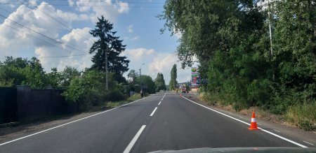 На фото - ШБУ-77 наносить дорожню розмітку на вулиці Івана Франка.
