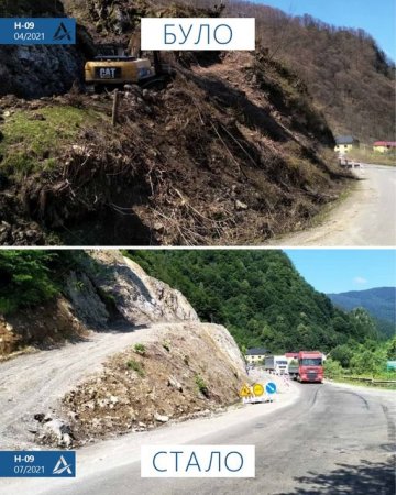 ▪️ майже рік тривають складні технологічні роботи із розламування та прибирання гірської породи на обох скелях. Габарити дороги по ширині на цій ділянці Н-09 не відповідають нормативам;