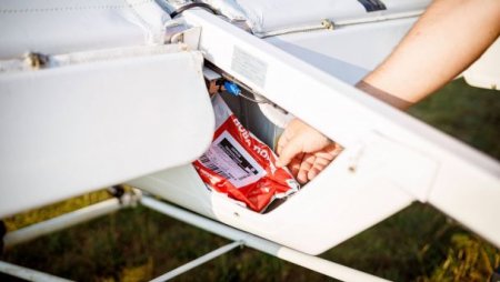 Посилка з сортувального терміналу доставляється прямо на аеродром, де її завантажують у спеціальний відсік безпілотника. Далі вона відправляється по заздалегідь запрограмованому маршруту.