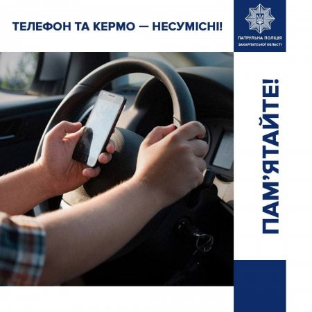 Нагадуємо вам, що користуючись мобільним телефоном за кермом, ви наражаєте на небезпеку себе та оточуючих. Телефон та кермо — несумісні!