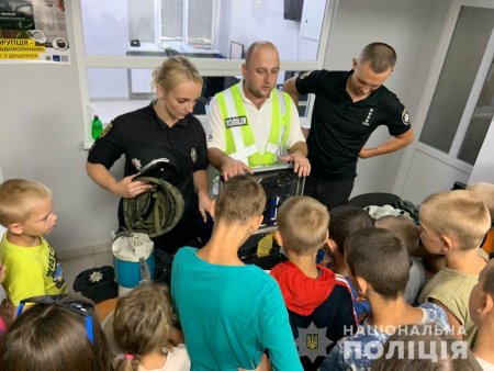 Під час візиту маленьких гостей до відділення поліції дітки побачили як працює чергова частина, побували у службових кабінетах слідчих та криміналістів, а також мали можливість посидіти в справжньому поліцейському автомобілі.