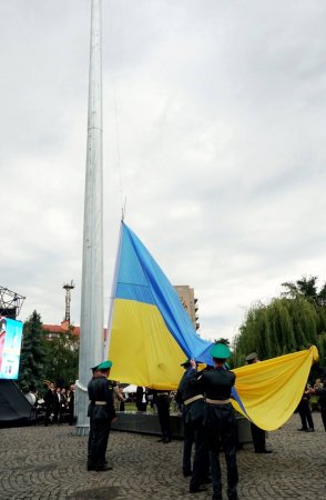 Найвищий на Закарпатті Державний прапор України до Дня Прапора та 30-ї річниці Незалежності України підняли сьогодні в Ужгороді на площі Богдана Хмельницького.