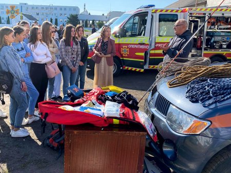 Аби студенти мали якомога краще уявлення про роботу рятувальників, професіонали влаштували виставку техніки та спорядження. Для всіх охочих вони розповідали про призначення кожного виду обладнання та згадували цікаві випадки зі своєї практики. Окремо студентам розповіли про причини виникнення пожеж та порядок дій у разі загорання, а також про те, що слід робити у випадку виявлення вибухонебезпечних предметів, розбиття побутового ртутного термометра, походу в гори тощо.