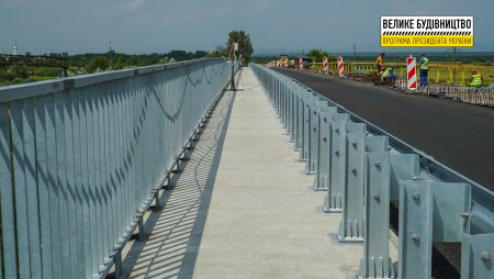 На правій смузі мосту роботи завершені: дорожники влаштували вирівнюючий шар з крупнозернистого асфальтобетону, верхній шар покриття із ЩМА і встановили нове перильне та бар'єрне огородження.