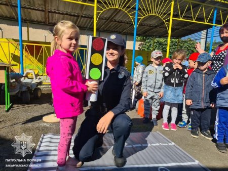 Патрульні провели із дітьми коротке заняття на тему безпечної поведінки на проїжджій частини. Вихованці у період заняття вивчили деякі дорожні знаки. Для кращого засвоєння знань інспектори проводили різні ігри та вікторини.
