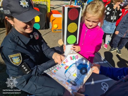 У кінці уроку патрульні подарували дітям пізнавальні книжки "1000 та 1 поворот". Окрім того, вихованці дитячого садку подарували патрульним світлофор, які змайстрували напередодні.