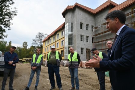 На об’єкті провели виїзну нараду під головуванням першого заступника очільника облдержадміністрації Мирослава Білецького за участі проєктанта, підрядника, голови Солотвинської територіальної громади Василя Йовдія та бенефіціарів проєкту – департаменту охорони здоров’я Закарпатської ОДА та генерального директора Центру легеневих хвороб Василя Скрипа.