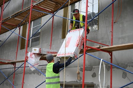 За його словами, вже підходять до завершення внутрішні роботи у будівлі, де проходитиме дезінфекція, та в корпусі із рентгенобладнанням. Продовжується будівництво харчоблоку і головного корпусу. Тут одночасно виконують внутрішні оздоблювальні і зовнішні (фасадні) роботи.