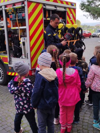 Спочатку рятувальники провели з гостями навчальну бесіду, під час якої у доступній формі розповіли про надзвичайні події та ситуації, що характерні для осінньо-зимової пори та нагадали про небезпеку дитячих пустощів з вогнем.