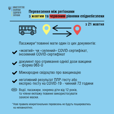 З 21 жовтня набувають чинності нові правила міжрегіональних перевезень на жовтому та червоному рівнях епіднебпезки.