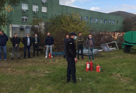 Також працівники ДСНС провели протипожежний інструктаж з інженерно-технічним складом підприємства, розповіли про умови та причини виникнення пожеж та якими первинними засобами пожежегасіння можна ліквідувати загорання на початковій стадії. Далі отримані теоретичні знання вони застосували на практиці, приступивши до гасіння умовної пожежі наявними вогнегасниками.