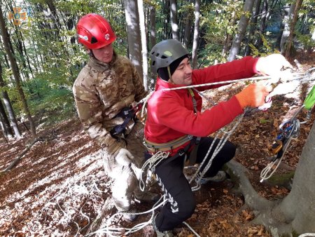 В урочищі Васкул у Квасах четверо рятувальників відточували свої навички з підйому та спуску людини за допомогою поліспасту – вантажопідйомного механізму, який дозволяє отримати силу, що перевищує підйомну силу лебідки в кілька разів. Насамкінець професіонали відпрацьовували процедуру швидкісного спуску зі схилу по мотузці – дюльфер.